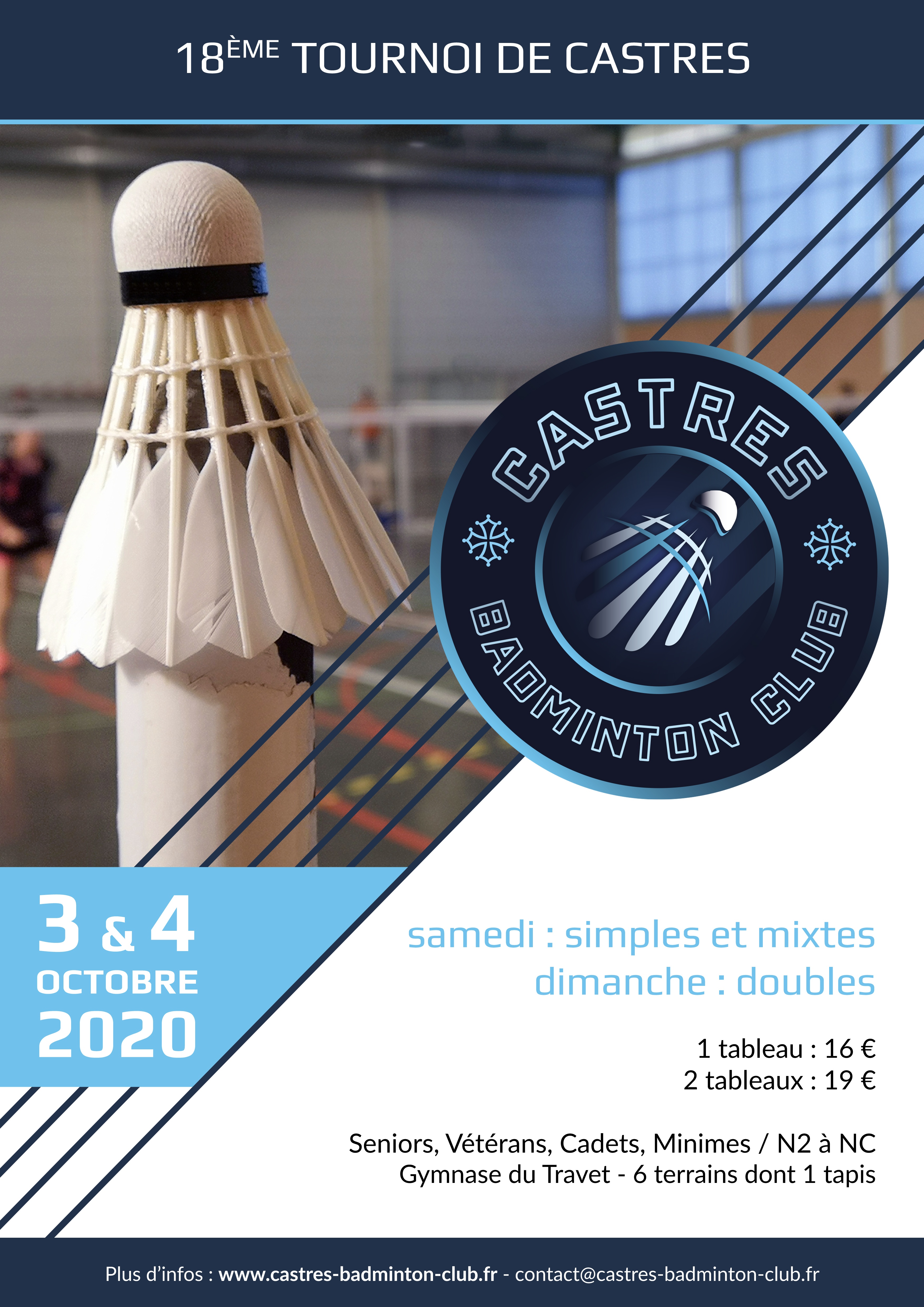 Note pour les Castrais : l’inscription au tournoi est limitée à un seul tableau pour les membres du club. Cela afin de permettre au plus grand nombre de participer et de privilégier les joueurs des autres clubs.
